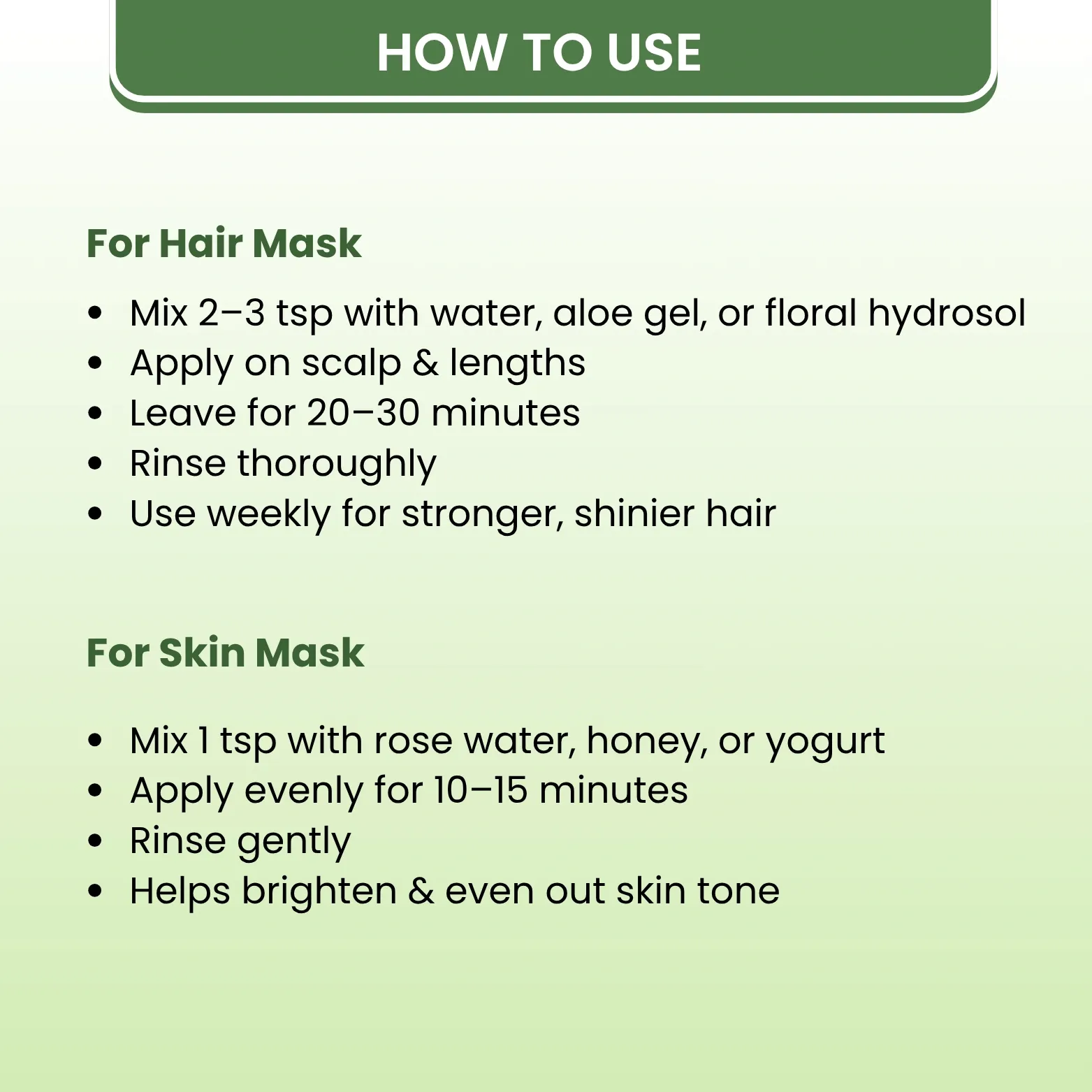 Our Amla Powder is crafted from 100% pure dried Amla pulp- completely free from seeds and peel- to retain maximum potency. It’s a powerhouse of Vitamin C and antioxidants that nourishes the scalp, boosts hair growth, reduces dandruff, and helps prevent premature greying. When used as a hair mask with water or a natural hydrosol, it leaves hair soft, shiny, and healthy. For skin, Amla helps improve texture, fade pigmentation, and brighten dullness. A multi-purpose beauty essential for both hair and skin care.