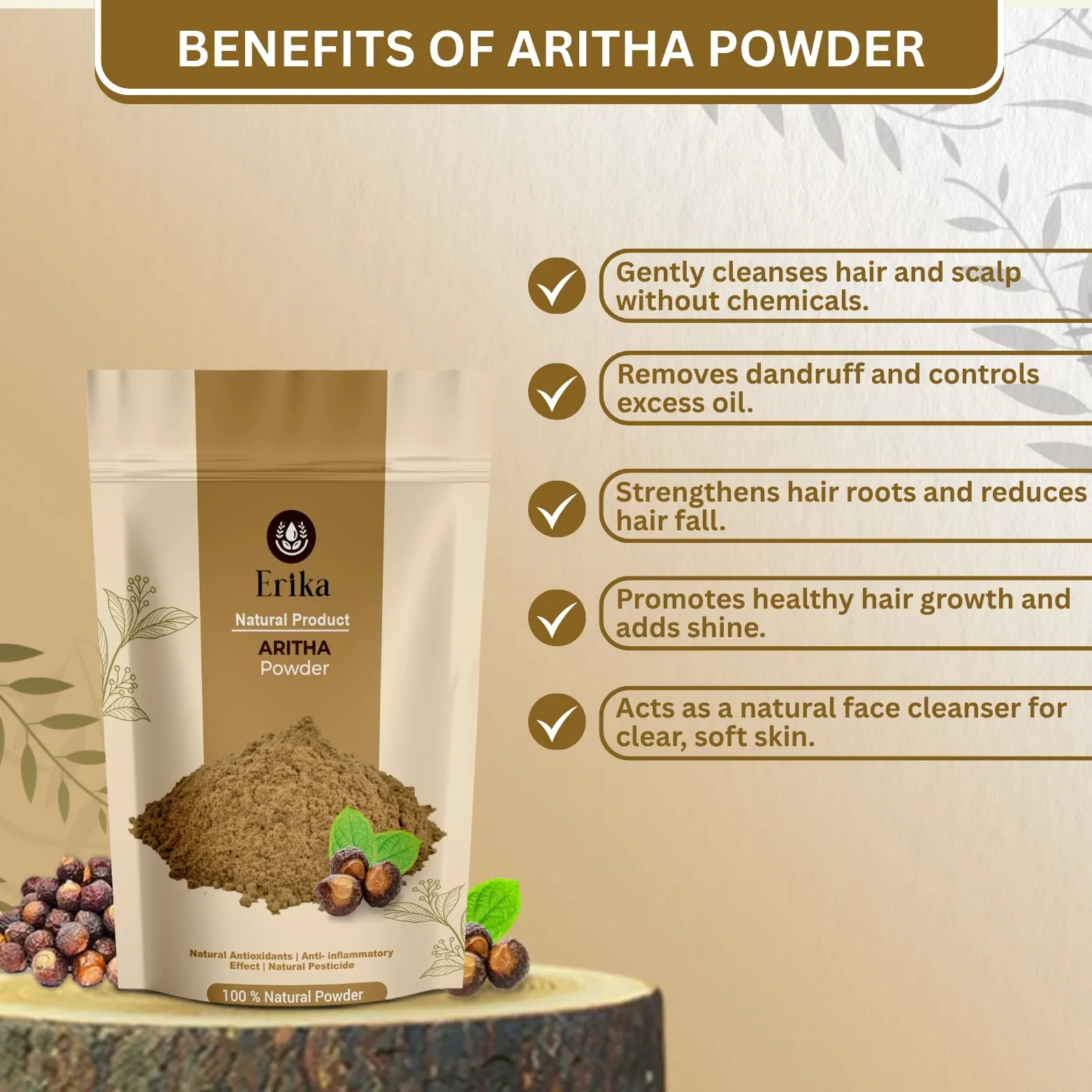 Erika Aritha Powder, also known as Soapnut powder, is a natural cleanser packed with saponins that gently purify your hair and skin without any chemicals. Ideal for hair care, it removes dirt, oil, and dandruff while strengthening roots and adding natural shine.