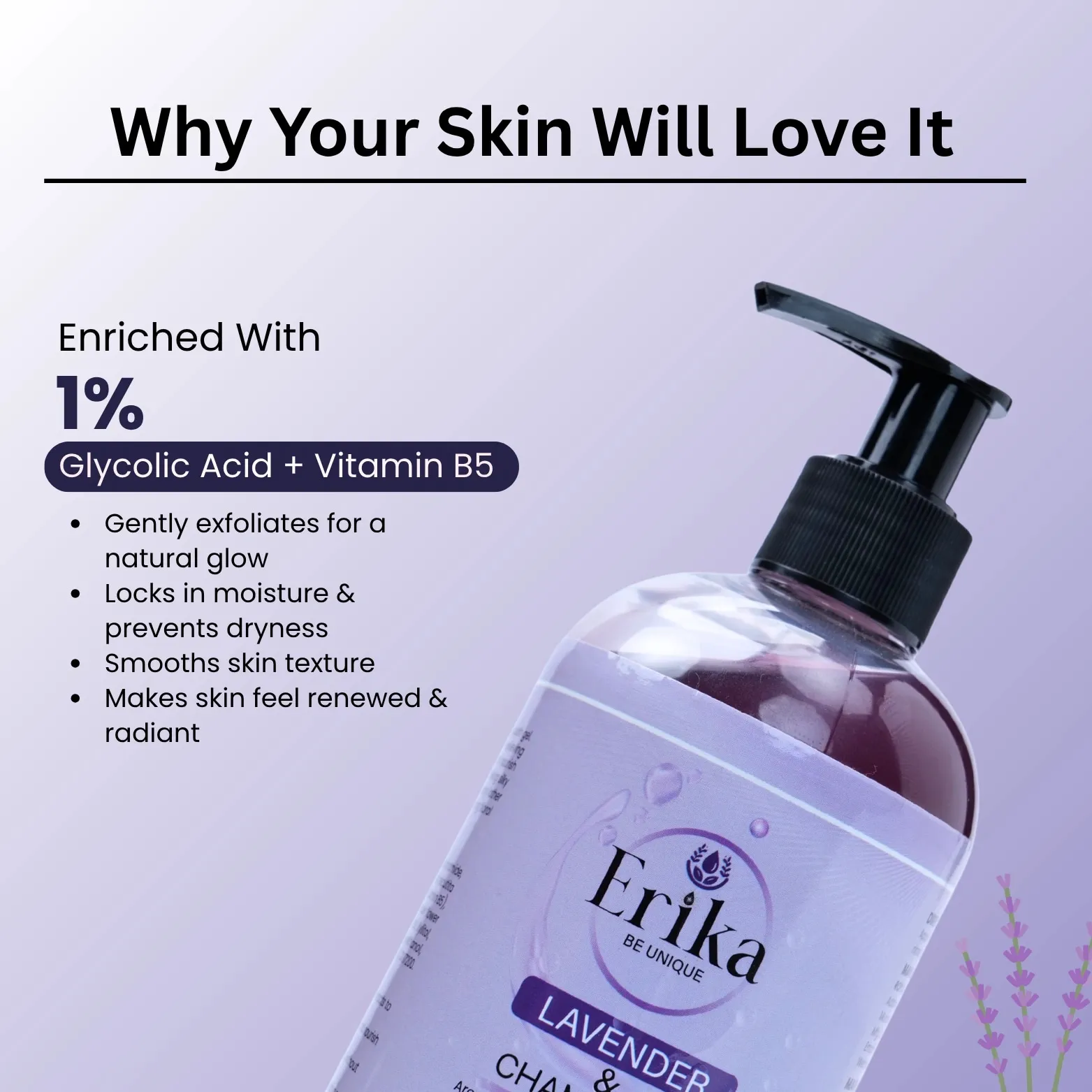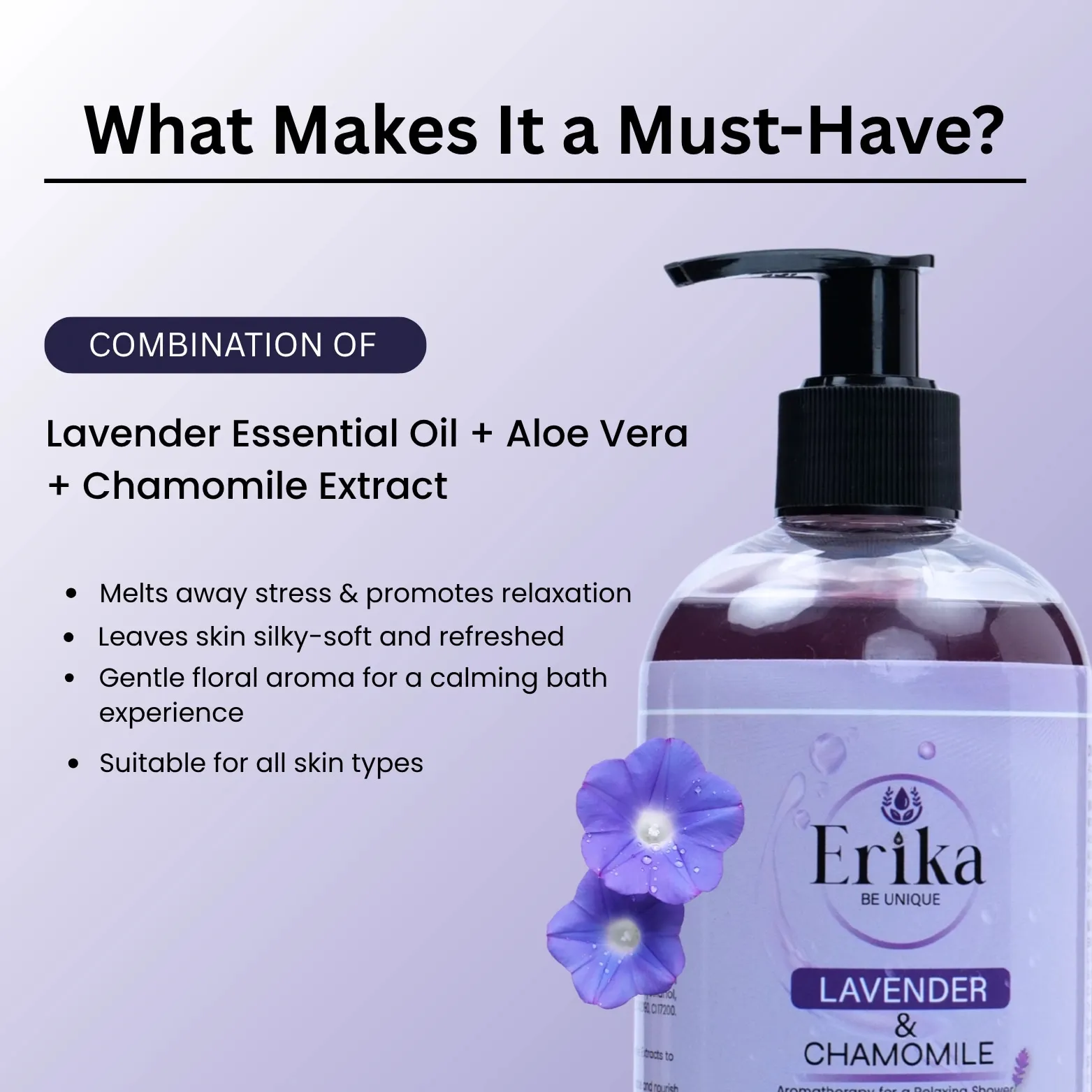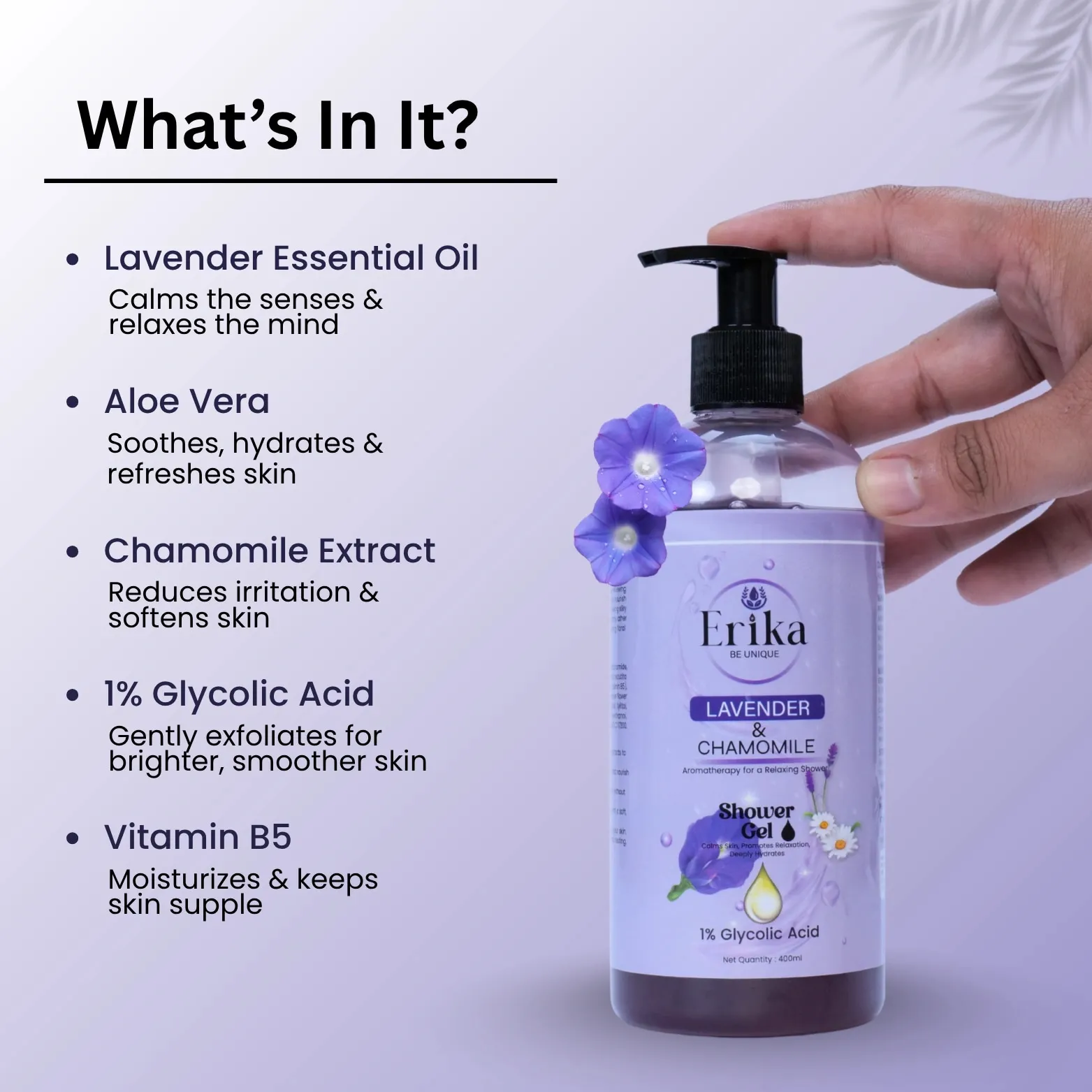 • Benefits of Erika Lavender & Chamomile Shower Gel