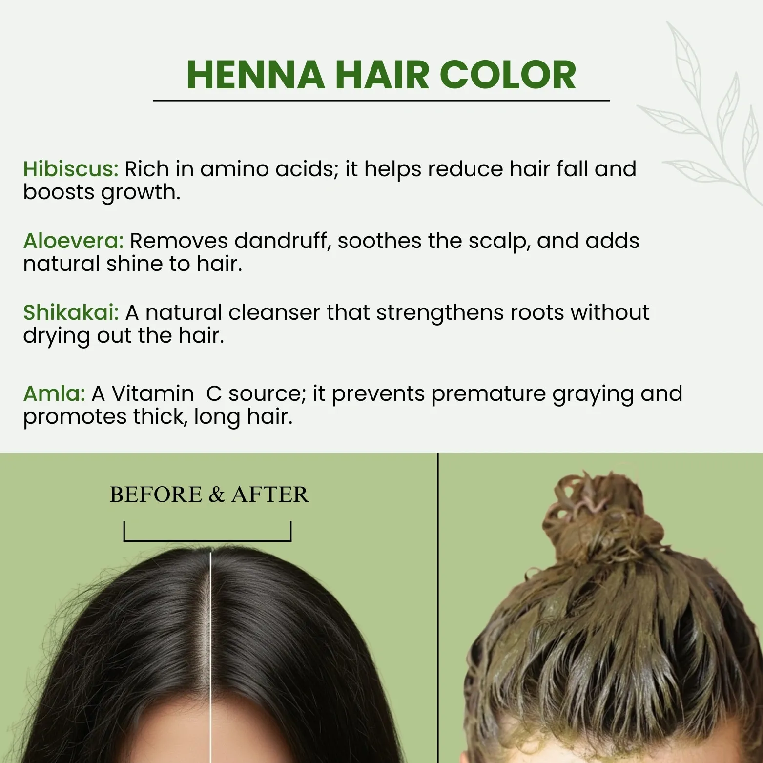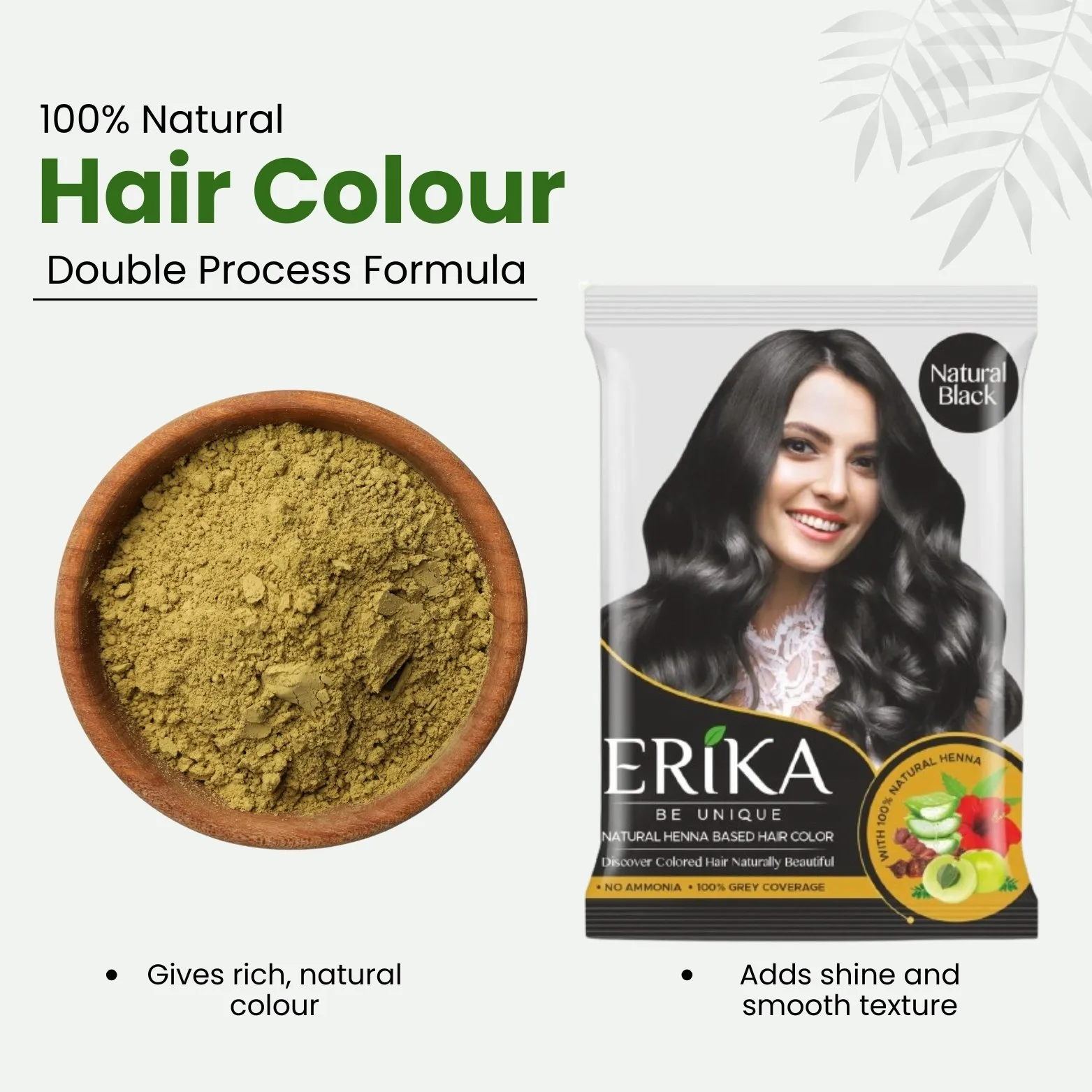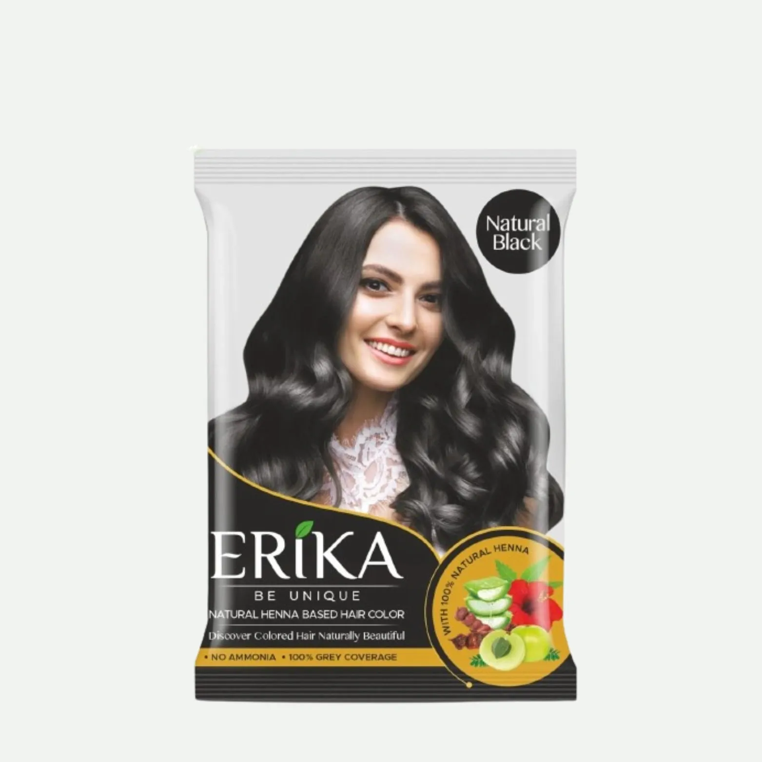 Erika Hair Color is a henna-based powder hair color crafted with the natural essence of henna and 9 vital herbs. This ammonia-free formula gently colors your hair while nourishing it from root to tip.