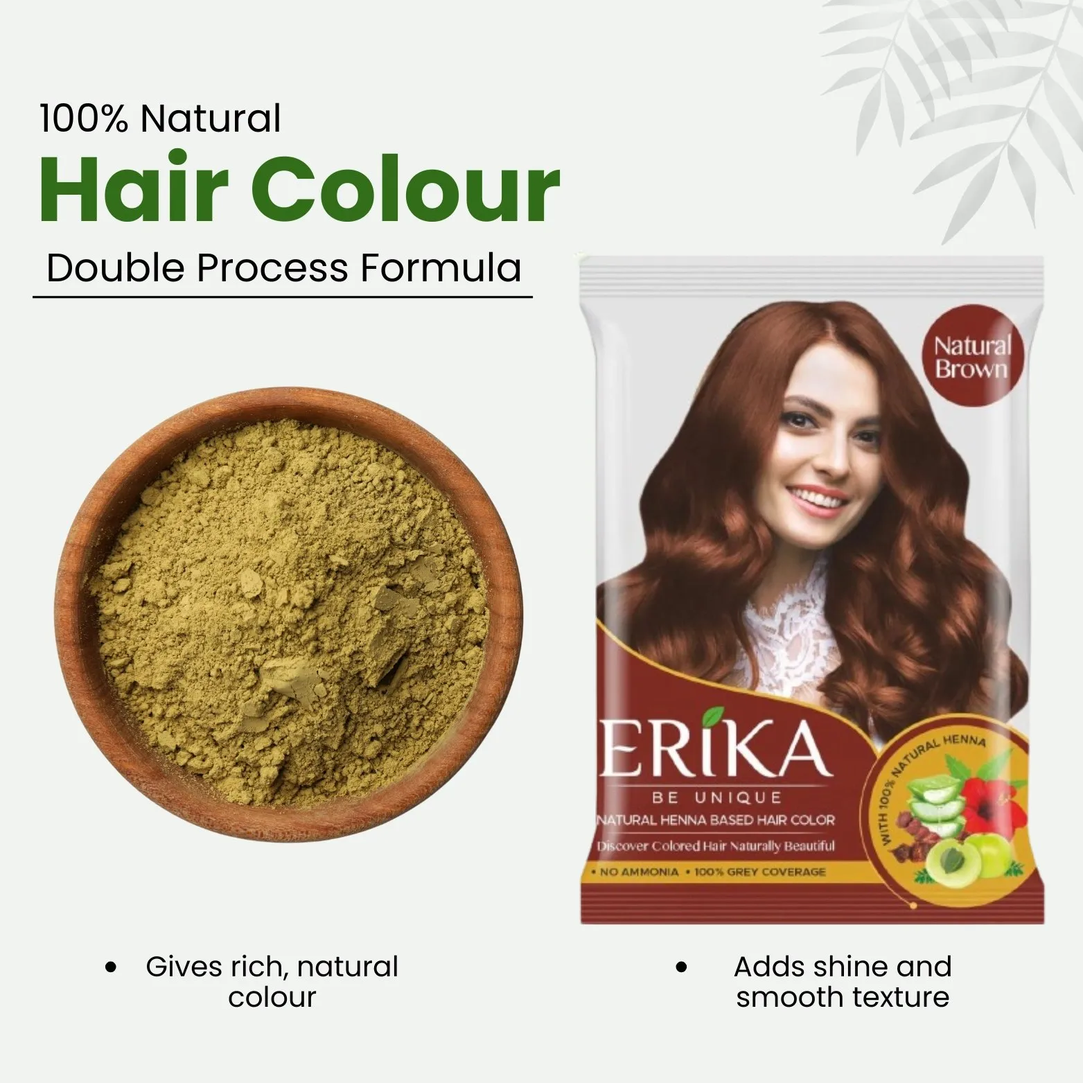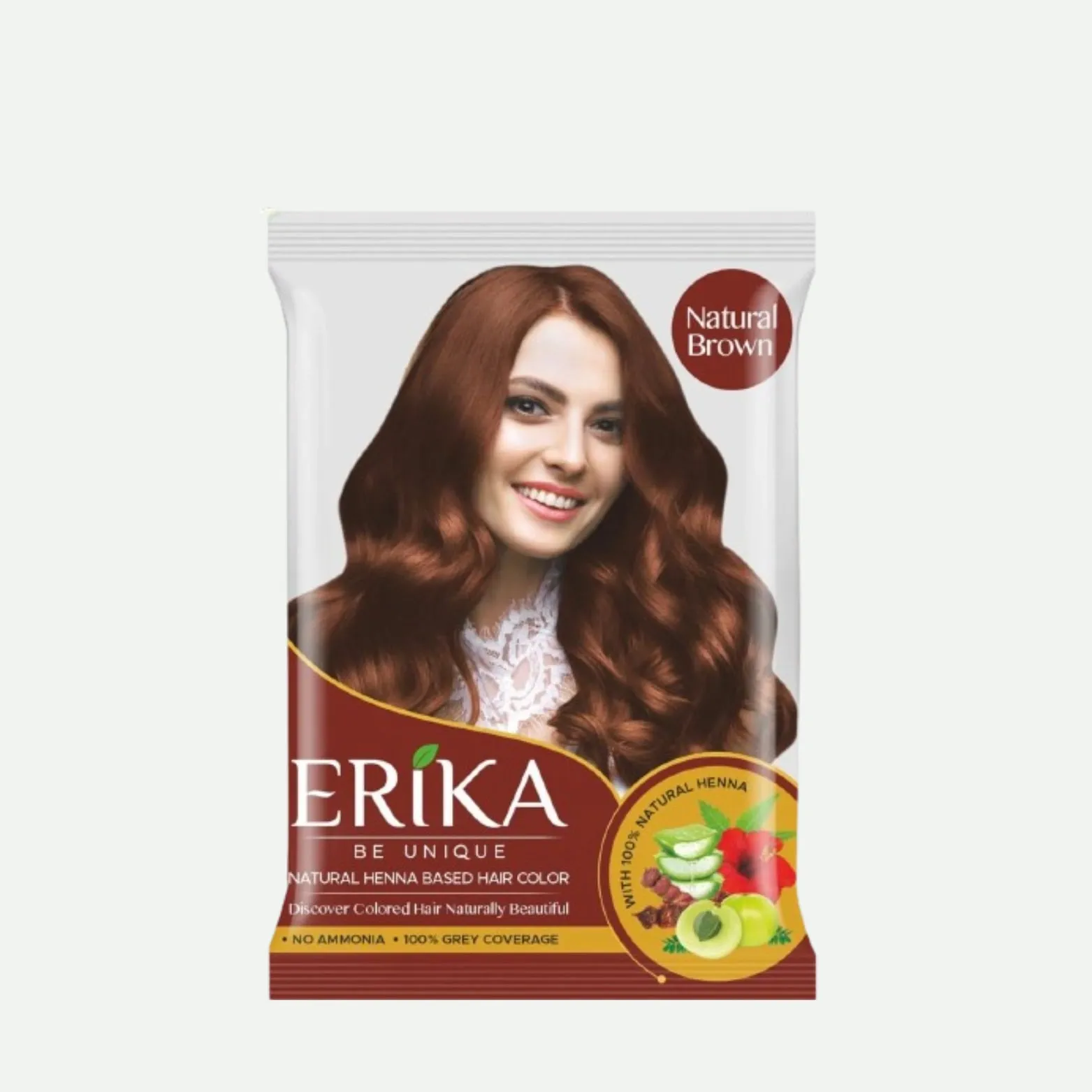 Erika Hair Color is a henna-based powder hair color crafted with the natural essence of henna and 9 vital herbs. This ammonia-free formula gently colors your hair while nourishing it from root to tip.