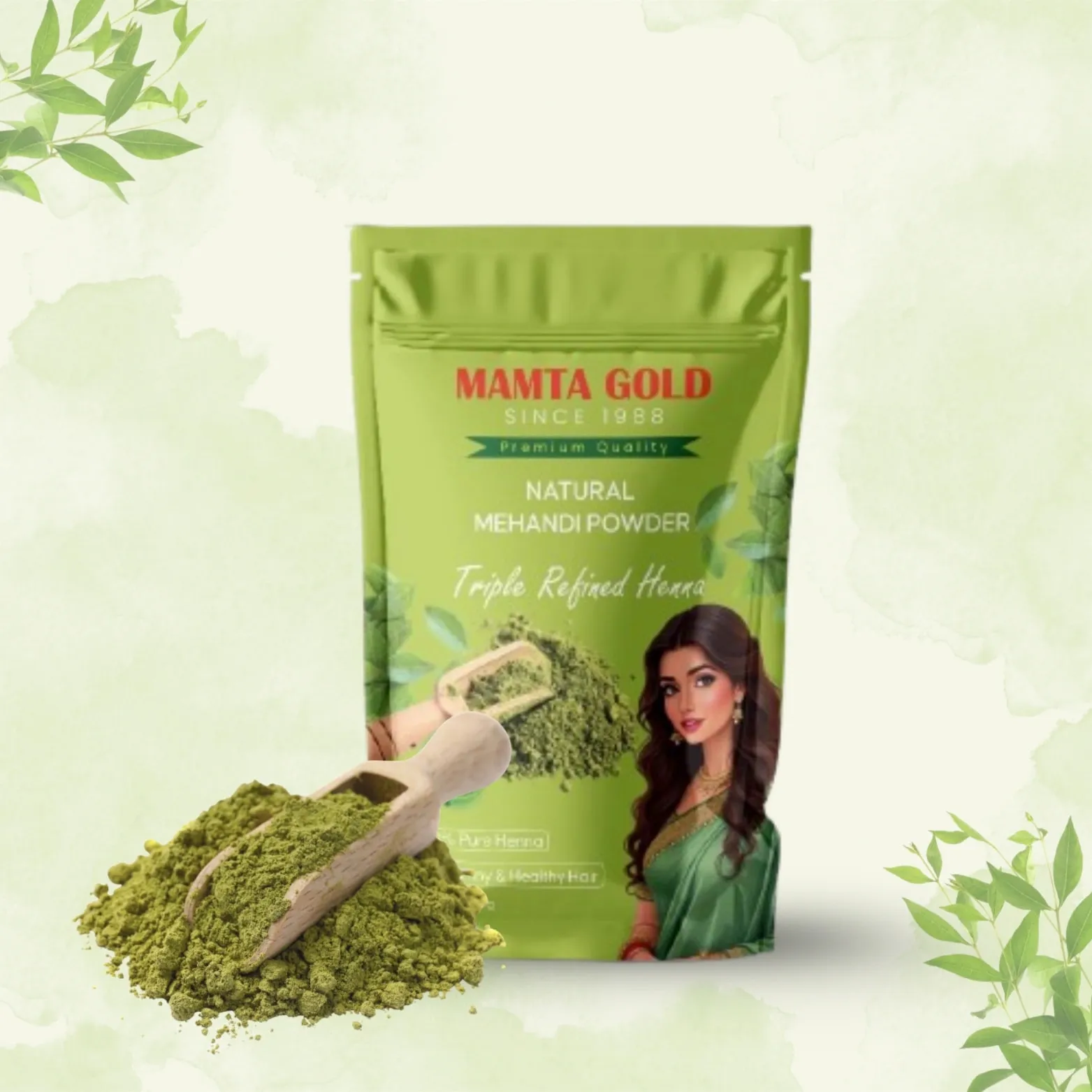Mamta Gold Mehandi Powder is a 100% natural product made from premium quality henna leaves sourced from Sojat, Rajasthan. Known for its smooth texture and easy application, it delivers a rich, dark, and long-lasting color. Mamta Gold Mehandi Powder is a natural solution for those seeking safe and effective beauty care without the risks of harsh chemicals. Rich in natural properties, it not only provides vibrant color but also helps cool the skin and maintain scalp health. Regular use can promote healthier hair by reducing dandruff and strengthening roots. Its smooth texture ensures a hassle-free application, whether used for traditional body art or as a natural hair dye. Suitable for all skin types, Mamta Gold blends tradition with wellness for a truly enriching experience. Choose Mamta Gold to add purity and care to your personal care routine.